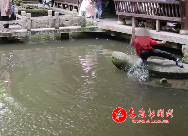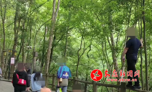 5月2日,香溪洞风景名胜区有游客违反景区安全规定,存在攀爬护栏,下池嬉水等不文明旅游行为。(实习记者 冉丽雯)