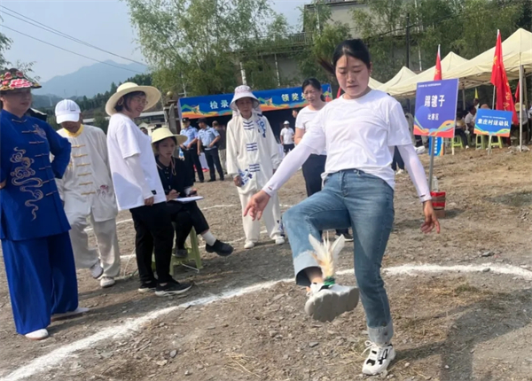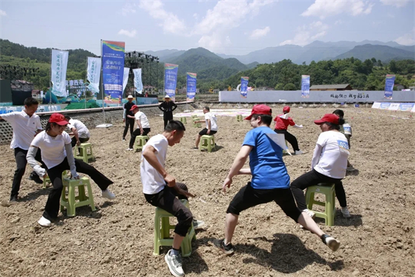 据悉,本次活动举办地分别为溪映明月·南山云见片区和民族风情·运动休闲片区,共开展了“背篓投篮”“稻田摸魚”“田园拔河”等活动,另有“抢凳子”“跳大绳”等5个团体赛项目吸引了大量群众参与体验。 “踢毽子”“抓石子”“斗鸡、跳绳、抽陀螺”,彰显农活绝技的“抛秧苗、滚铁环、趣味插秧赛”等8个个人项目,将田园风光里的郊外农民趣味运动会推向高潮。