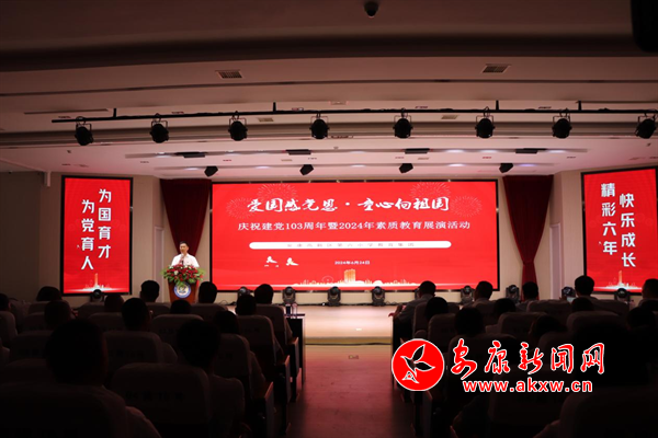 本网讯(通讯员 刘雅静)6月24日,安康高新区第六小学教育集团组织开展“爱国感党恩 童心向祖国”——庆祝建党103周年暨2024年素质教育展演活动。