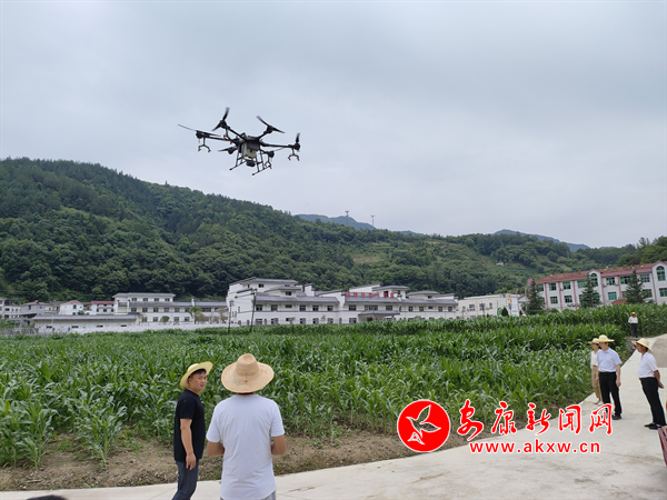 本网讯(通讯员 杜韦慰 李苗)时值仲夏,气温升高,降水增多,镇坪县玉米如雨后春笋拔地而起,长势良好,丰收在望。玉米虫害也随之呈现出高发态势,眼下进入夏粮管理的关键时期。镇坪县农业技术推广站为确保粮食稳产增收,积极开展玉米大豆病虫害监测调查和病虫害防控工作,防病虫、减损失、保增产,强化玉米大豆病虫害防治。在曙坪镇战斗村农科所玉米良种试验田里,农技人员正在用飞防无人机对害虫进行防治防控作业。