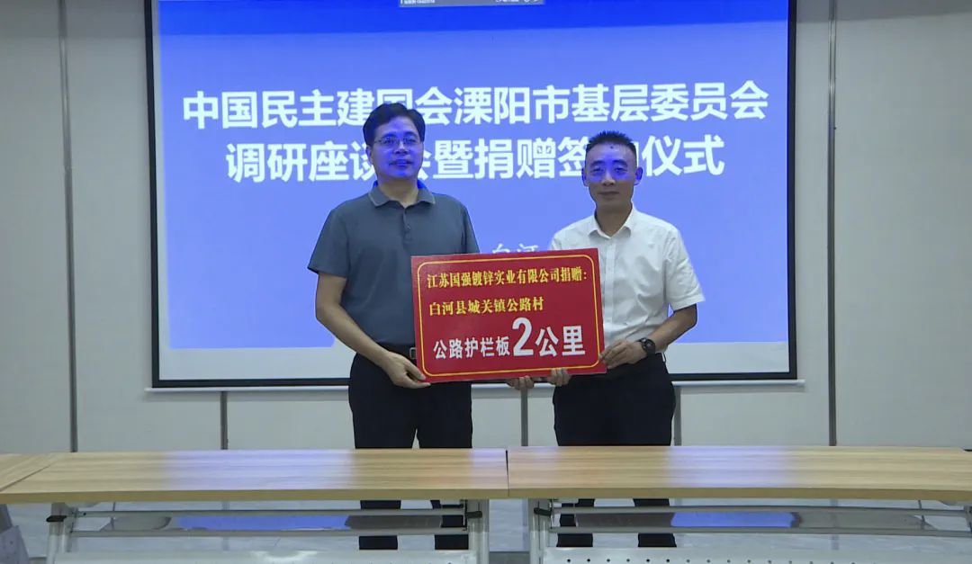 在座谈会上,民建溧阳基层委员会向白河慈善协会捐赠5万元帮扶资金,会员企业江苏国强镀锌实业有限公司为城关镇公路村捐赠了全长2公里的公路护栏板,会员企业溧阳畅享互联网科技有限公司与白河县电子商务公共服务中心签订了战略合作协议。