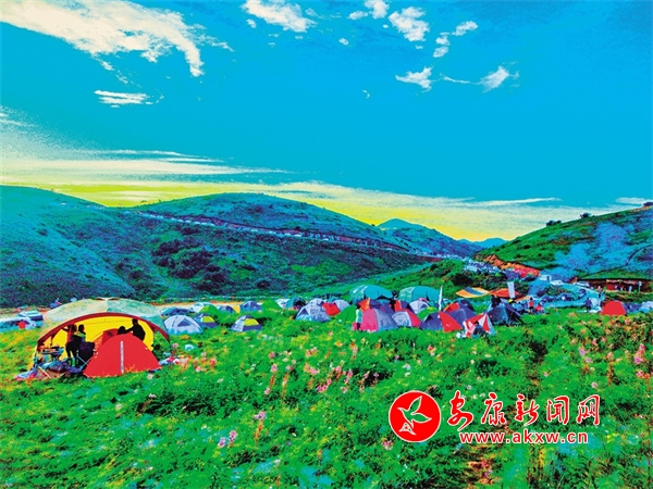化龙山草甸如今是露营网红打卡地。王韬 摄