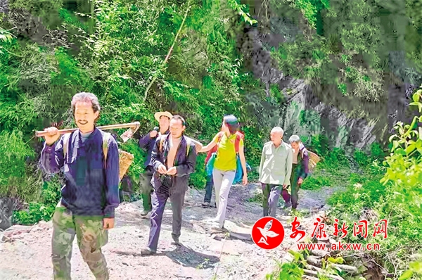央视编导与向导、采药人出发。黎盛勇 摄