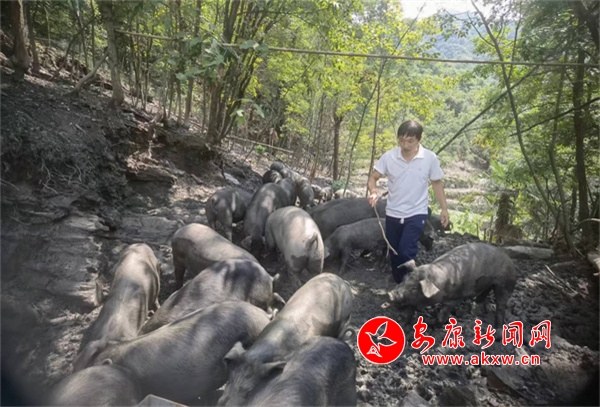 仲夏时节,旬阳市麻坪镇老庄沟村,大山里清静凉爽。随着一阵音乐响起,树林间瞬间躁动起来,一群黑猪哼哧哼哧地钻了出来。“一放音乐,它们就知道饭点儿到了。”“猪馆儿”王兴隆说,“喂饱了就回去拱个坑睡觉,这群黑猪从小就生活在树林里,我对这种利用自然资源的纯天然养殖方式是很有信心的。”