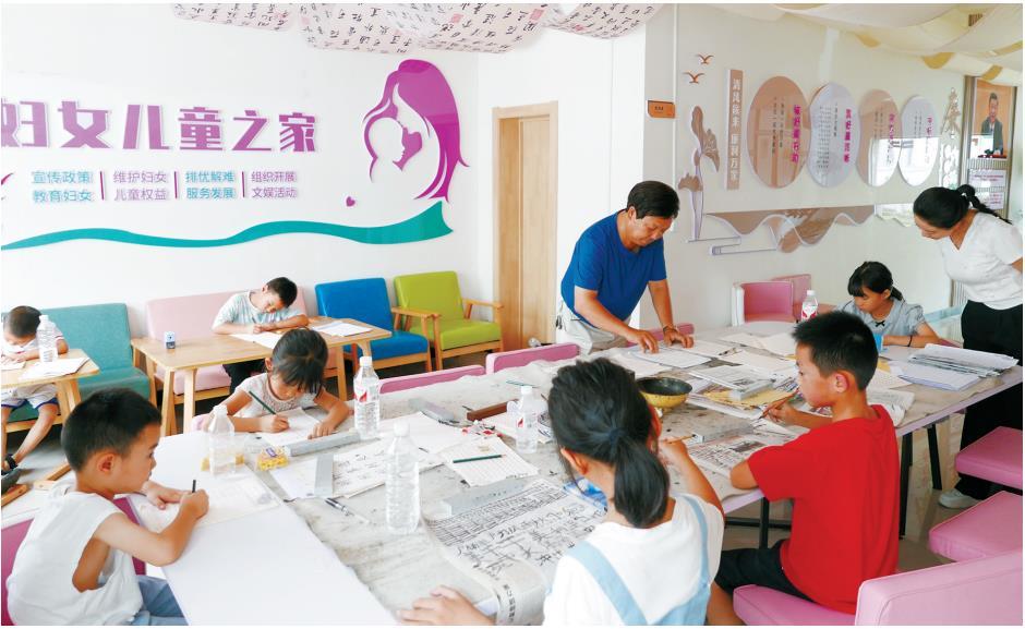 8月12日,塘坊坝社区联合子中心,儿童在练习书法。