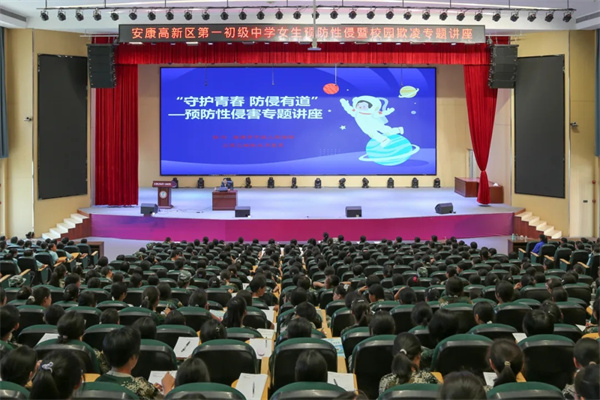 新学期伊始,普法正当时,为进一步增强未成年女生的法治意识和安全防范意识,提高未成年女生自我保护的能力,促进未成年女生身心健康发展,9月5日下午,安康中院“天平护航”宣讲团成员张晔走进安康市高新区第一初级中学,为该校1000余名女同学送上了一场量身定制的法治课。