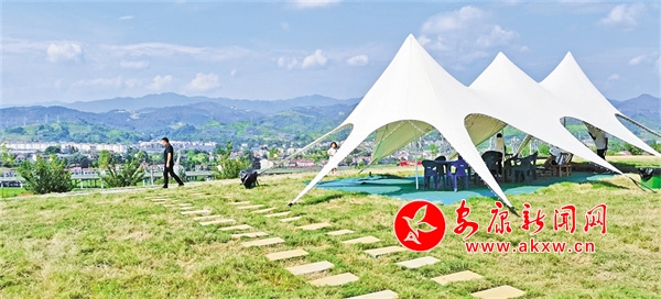 当我赏罢一马平川的恒口贡米基地,迈步田园后面的缓坡,走过以“稻梦时光”统一冠名的彩虹路、孝义文化长廊、研学基地、民宿群落,来到土坡顶台上的这块绿地,目光所及,仍属“稻梦”系列:碧绿的草坪、雪白的帐篷、深红的房子、鲜艳的花卉,组成了视野开阔、环境幽静的“稻梦时光露营基地”。