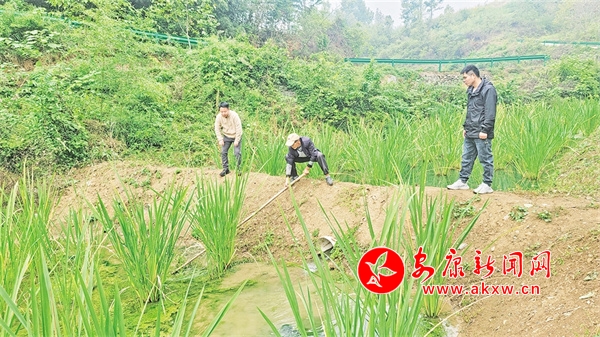说干就干,顺流排列的12个水塘一天天建好,河水在桥下被全部拦截到水塘中,每个水塘都种上了茭白。他们还在当地发展起志愿服务队,负责日常种植和维护管理。