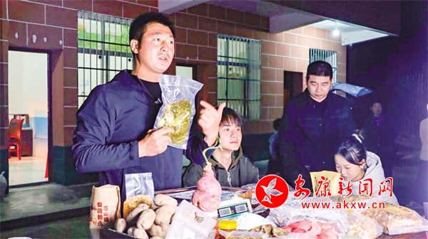 据了解,为了丰富产品种类,直播前夕吴勇就带着驻村队员以及村上干部,针对腿脚不便的老人进行挨家挨户收集登记,统一代卖,能到现场的群众则自己带着山货到现场现称现卖。根据当天后台数据分析,当晚最高峰直播间人数达200多人,带到现场的所有农特产品一售而空,实现交易金额4319元,良好的开端不仅让吴勇直直呼没想到,就连一直等到下播的群众也感到不可思议。