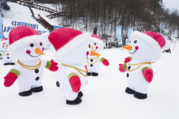 雪场上,滑雪、嬉雪、赏雪等多种冰雪项目让偌大的滑雪场充满笑声、欢呼声,景区内热闹非凡。
