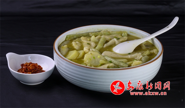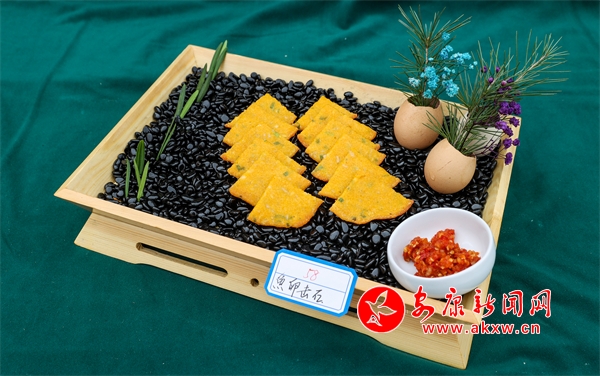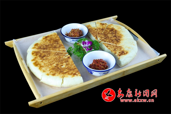 “甜酒火烧馍”,是石泉县几代人美食智慧的积累,传承至今,是深受人们喜爱的小吃。它是采用古老传统老酵面加甜酒发面,将老酵面、甜酒加入温水后,再加入面粉一起搅拌均匀后再揉面。把面团揉制光亮后放置几小时待其自然发酵。等到面团成发泡蜂窝状态,才可以开始将面团做成圆形,在用擀面杖擀薄圆形面团放入柴火灶锅中,撒上芝麻,小火炕制一面黄在翻面炕制两面色泽金黄。吃进嘴里有小麦淡淡的清香味,也有甜酒的甜香味,回味无穷。杜光发制作的这道小吃获得安康市2024年“安康味道”名小吃。