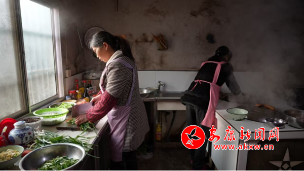 平梁镇蔡家河村村民牛少汉一家一大早就开始忙碌起来,备好柴火,在院子里摆上大木桶,烧上满满几锅开水,杀猪师傅手法娴熟,大家齐心协力,烫猪毛、分割猪肉,忙得不亦乐乎。