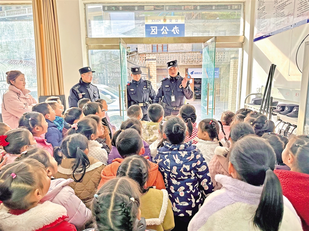 1月8日,紫阳县公安局高桥派出所举行“萌娃进警营 警心伴童心”主题110宣传日警营开放活动,邀请辖区学校师生走进警营,感受警营文化。陈益谦 摄