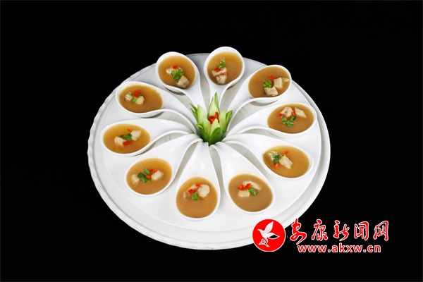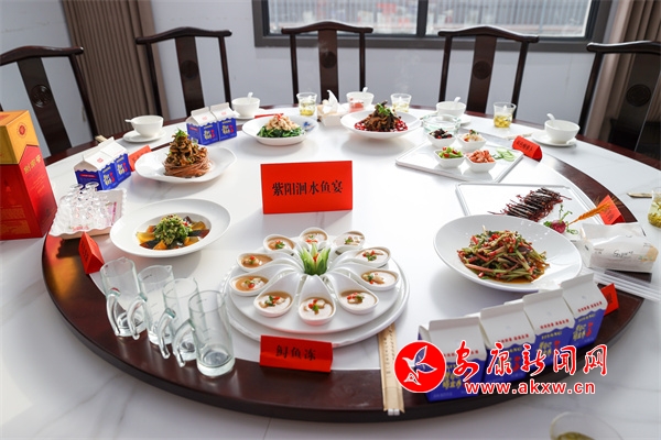 “紫阳洄水鱼宴”由8个凉菜,即:香酥小鱼、干煸牛肉、茶香鱼皮、鲟鱼冻、捞汁七彩花生、酸辣四拼、双色变蛋、凉拌折耳根;8个热菜即:茶香鲟鱼、紫苏鱼片、炝锅鲤鱼、酿羊肚菌、辣子鸡、腊味三拼、鱼头炖黑豆腐、当归白萝卜炖羊肉;一个汤菜:鱼丸汤;3道小吃即:鱼肉饺子、茶香饼、紫菜鱼饼;主食:金银米饭、酸菜面和饭后水果拼盘组成。据了解该宴席是继汉滨区流水鱼宴、石泉县江鱼鱼宴之后,全市公开推向市场的第三个以鱼为主料的专业鱼宴。