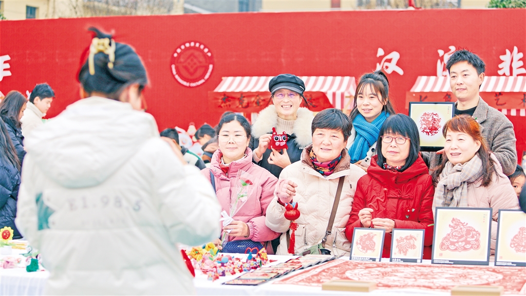 剪纸爱好者在冯增慧的剪纸摊位前打卡拍照 罗妍 摄
