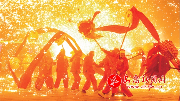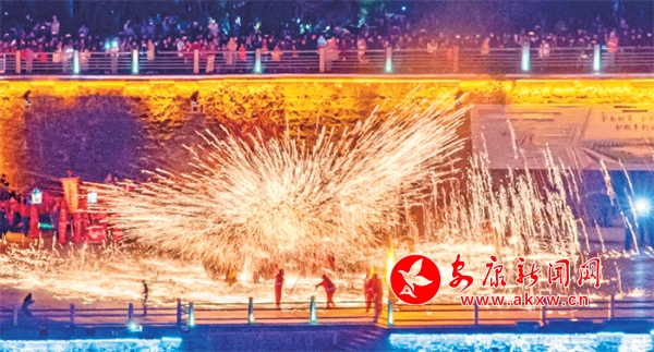 打铁花点亮汉水之滨。林江 摄