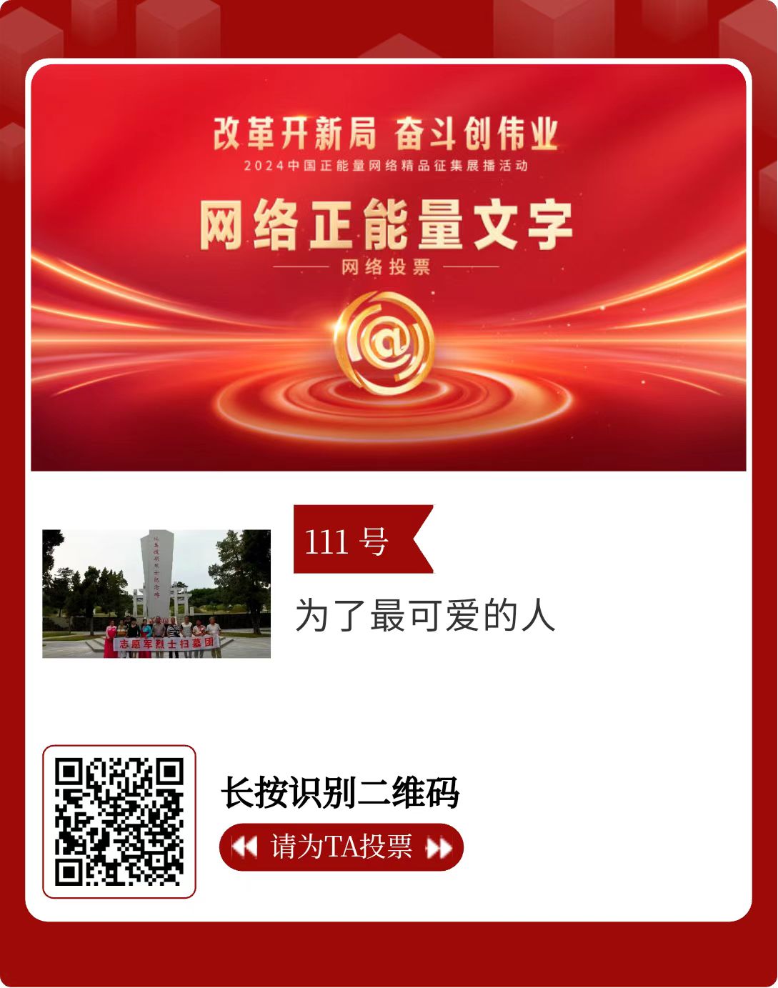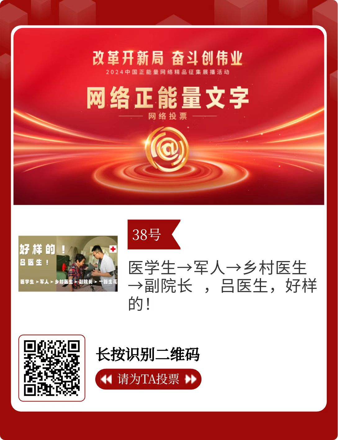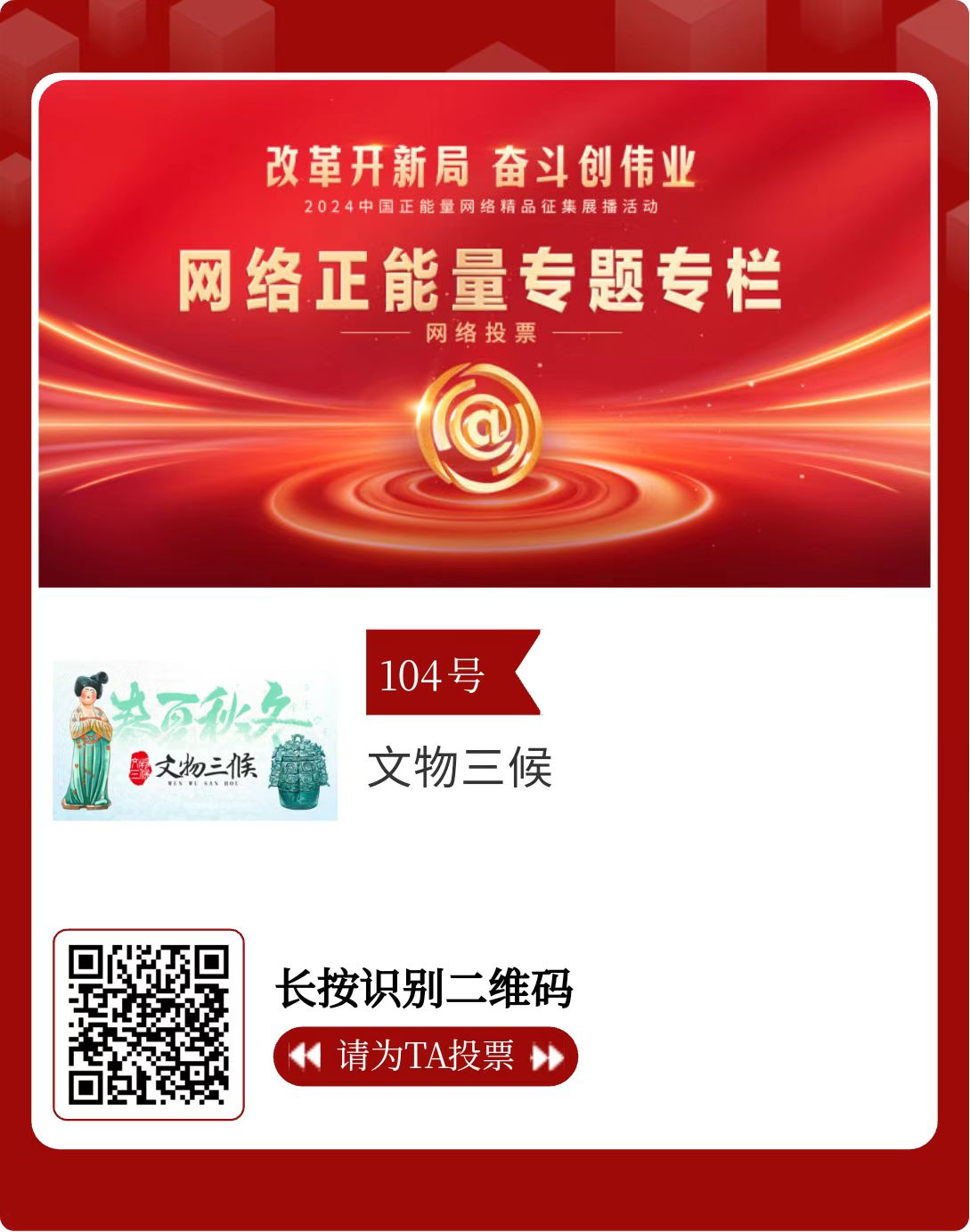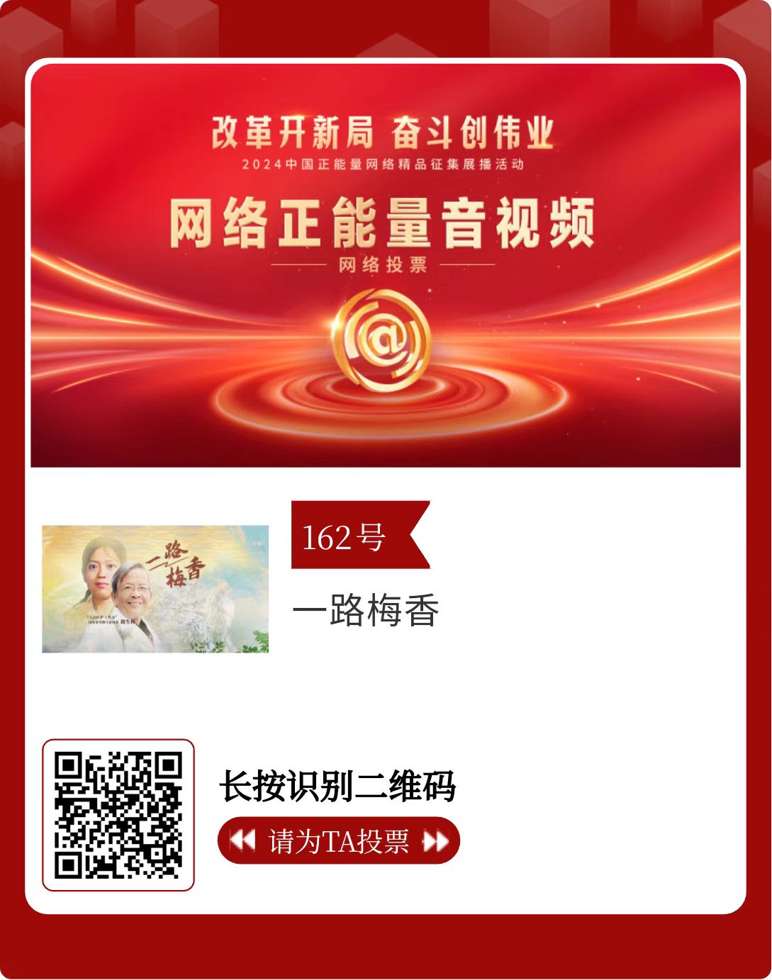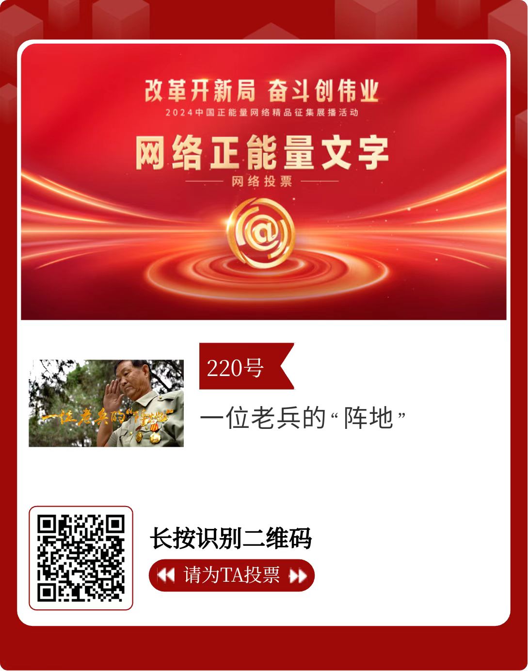 改革开新局,奋斗创伟业。由中央网信办主办的2024中国正能量网络精品征集展播活动今天启动网络展播投票。