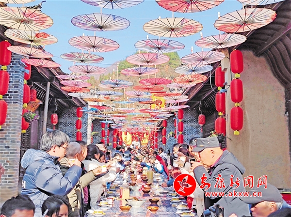 “观众朋友们大家好,这里是双河口古镇,欢迎大家来到庖汤桌宴的活动现场!”冬季庖汤长桌宴的举办地,是修葺一新的驿道文化广场,游客在这里观看精彩的文艺节目,品尝本土特色美食,欣赏茶马古道历史浮雕,品味双河口魅力故事。该项目是2024年7月19日洪灾后,为修复损坏的护坡,依托现有地形条件,盘活原有闲置资源重新改造的文化广场项目,于当年10月1日建成投用。项目建成后,古镇的景区框架拉得更宽,文化活动载体变得更大,文化内容展示更加生动,配合12月31日建成投用的省级乡村振兴示范镇展陈室项目,双河口的历史文化和人文故事变得可感可知,成为古镇一处新的地标性“打卡地”。