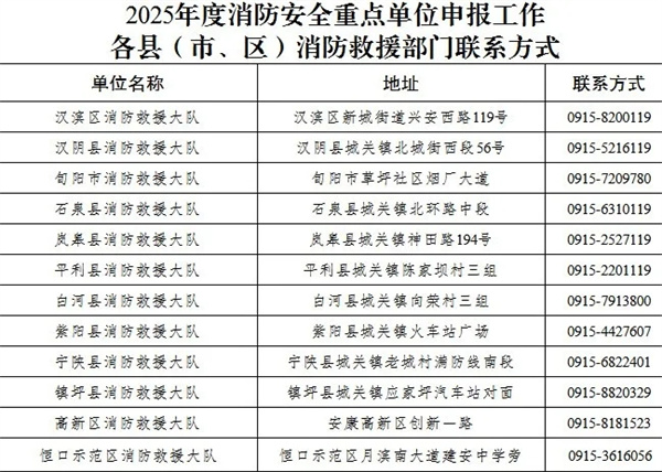 安康市消防救援支队关于申报2025年度消防安全重点单位的公告