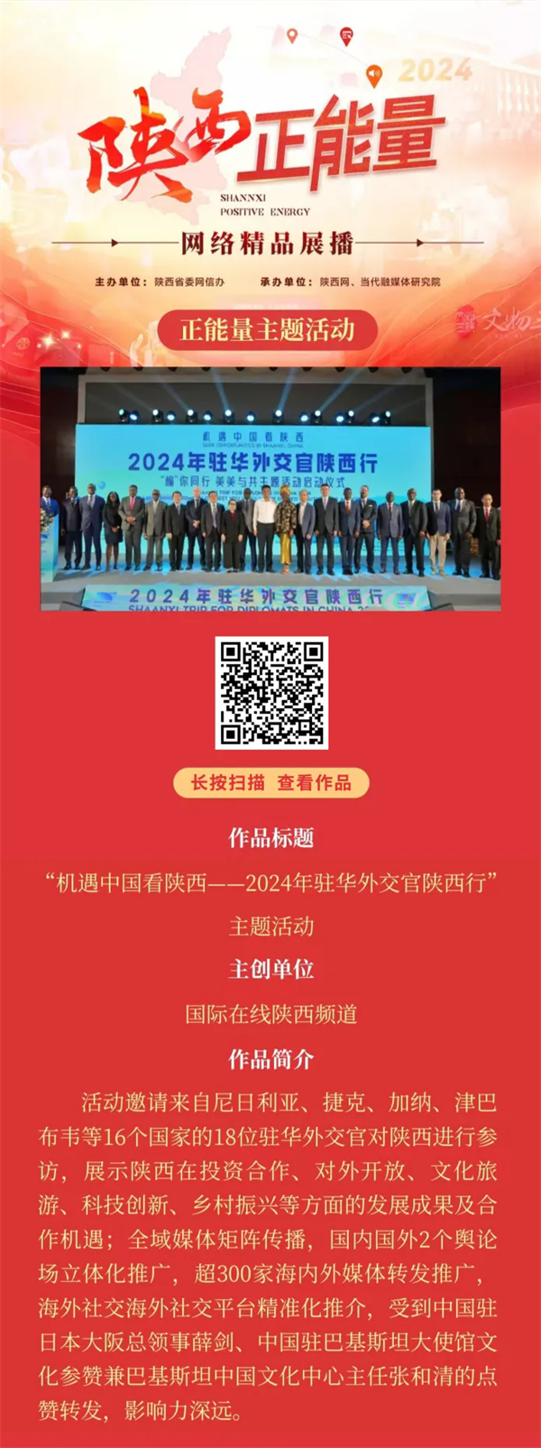 2024陕西正能量网络精品展播丨正能量主题活动:机遇中国看陕西——2024年驻华外交官陕西行主题活动
