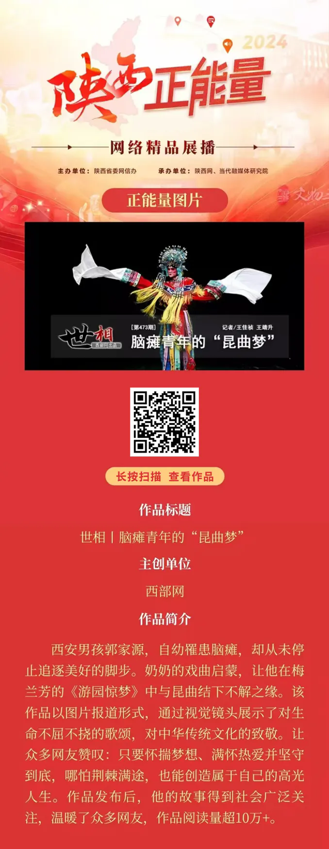 2024陕西正能量网络精品展播丨正能量图片:脑瘫青年的“昆曲梦”