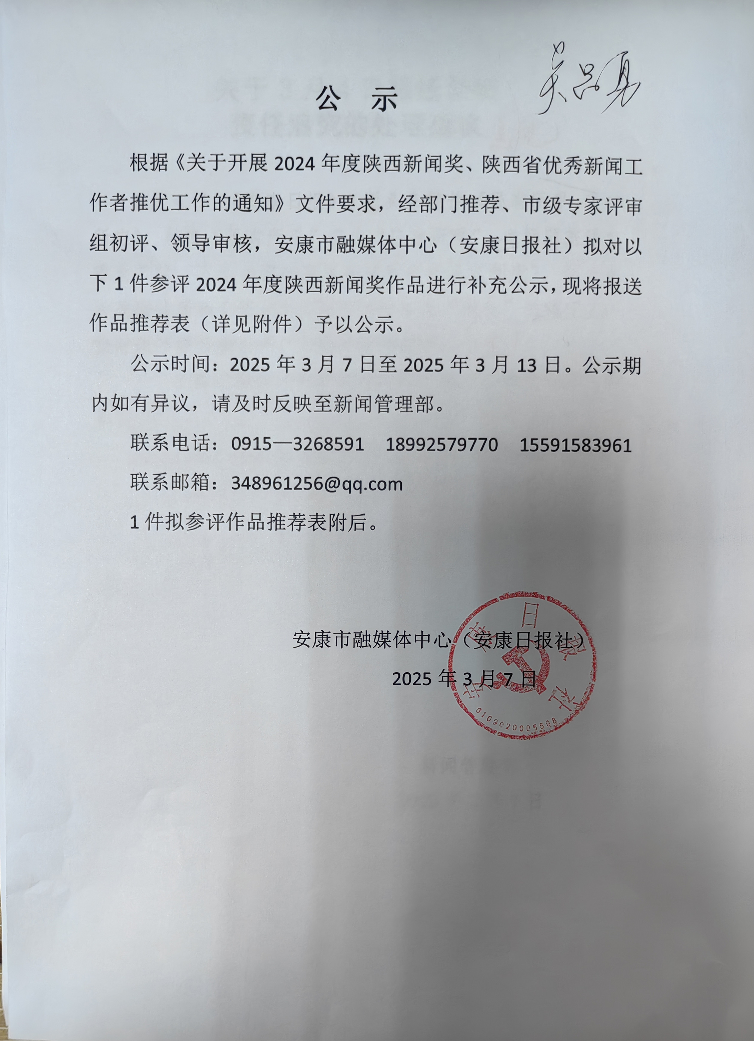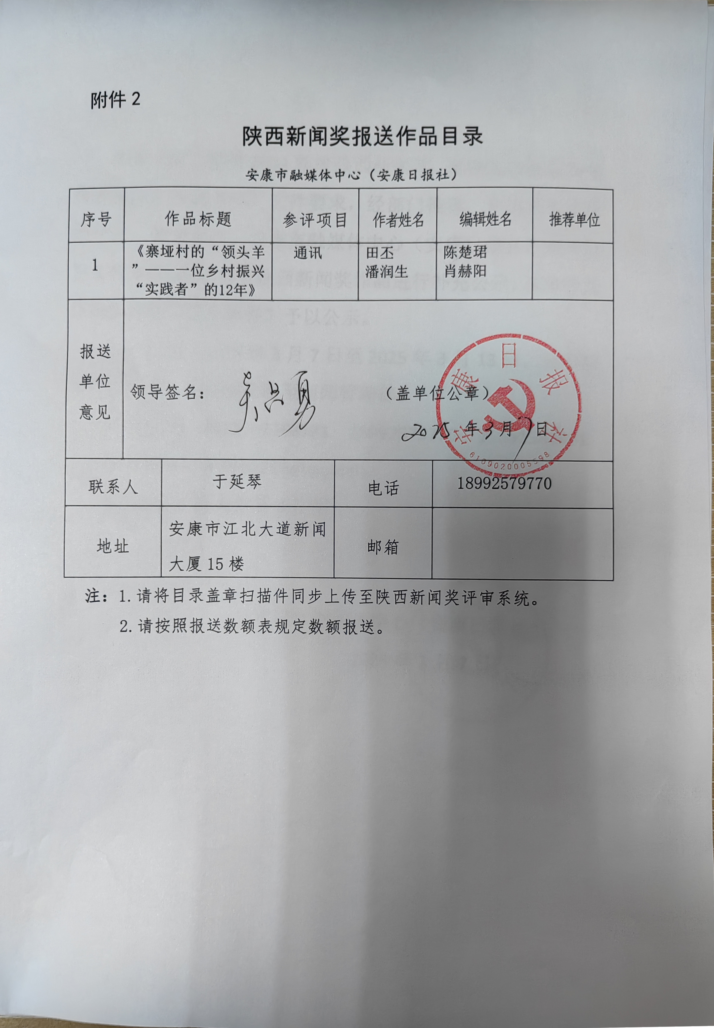 陕西新闻奖参评作品推荐表.rar