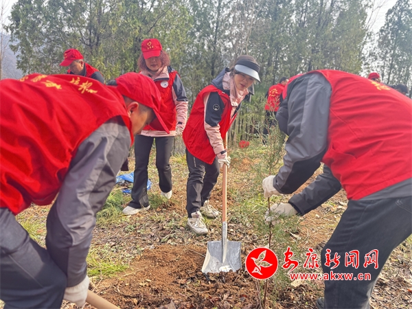 迎着和煦的春风,参加植树的党员志愿者,精神抖擞、干劲十足,两人一组,或三五成队,扶正树苗、挥锹培土、踏土夯苗、围堰浇水,每个环节、每道工序都做得认真细致,种下树苗近100株。新栽种的树苗错落有致、迎风挺立,增添了盎然生机,吐露着无限春意。