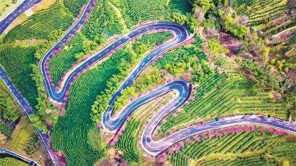 “这里每口呼吸都是茶香混着梅香。”来自西安的摄影爱好者张先生架设好三脚架。“清晨薄雾漫过茶山时,花影在雾气里若隐若现,简直是一幅立体的水墨丹青。”据茶园负责人介绍,最佳赏花期在3月初至4月中旬,此时春梅、樱花等花卉次第开放,期间游客还能体验“一芽一叶”采摘技法,现场观摩杀青、揉捻等古法制茶工艺。