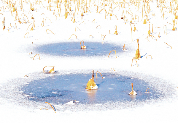 功夫在诗外,艺术皆相通。在西安美院期间,我学习过美术史论,对传统美学和西方美学有了系统学习和认知,尤其钟情“以空写实”的留白意境,“鸟宿池边树,僧敲月下门”空灵意境让我神往。我把美术理论运用到摄影实践。在拍摄荷塘时,我常借助湖面镜面反射构建对称构图,让残阳余晖与湖面莲藕剪影在虚实间互动;俯拍莲蓬剪影时,轮廓线条在晨昏光晕中的若隐若现,恰似水墨画的笔断意连,在快节奏的现代社会中,我渴望通过镜头唤醒观者对静谧与永恒的感知。