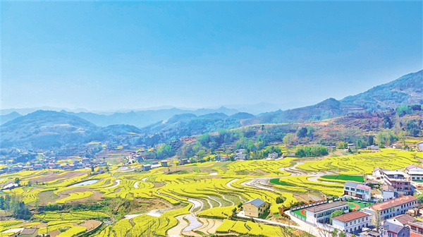 此时,正值油菜花的最佳观赏季节,踏入漩涡镇,仿若踏入了一个被岁月遗忘的世外桃源。山峦连绵起伏、梯田层层叠叠如天梯般蜿蜒而上,大者如曲池,小者似新月,在阳光下闪耀着金色的光。