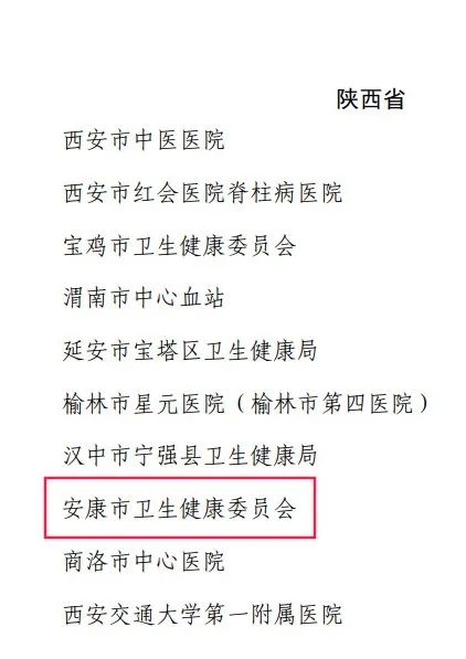 安康市卫健委荣获全国先进