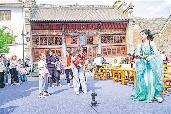 漫步在石泉汉江古城,游客们或驻足欣赏古戏台上的汉服展演、诗歌诵读,或在禹王宫前体验非遗传承,文物展出,历史与现代的交融让石泉这座千年古城焕发勃勃生机。当地特色货品小摊更是吸引众多游客驻足挑选,石泉腊肉、搨辣子、鼓气馍等特色产品深受游客青睐。早上皮薄馅多的东关水煎包配鲜嫩爽口的老李家豆腐脑,下午来一锅麻辣鲜香石锅鱼或是爽口飘香的特色烤鱼,晚上漫步古色古香的老街品一杯香味浓郁的网红咖啡,让来石游客一整天都乐在其中。