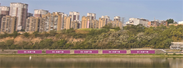 江北广告位紫色区域:D1—D5,规格35米*7米,费用6万。
