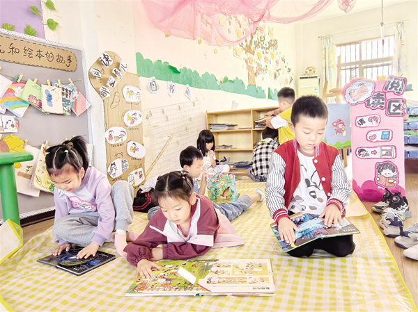 4月23日,汉阴县春蕾幼儿园的小朋友正在阅读儿童读物。(陈浩 摄)