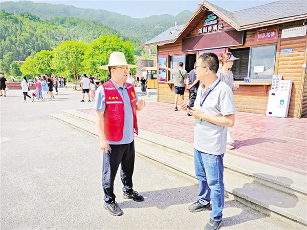 游客需要什么,党员就做什么!今年“五一”期间,全镇设立4个固定服务岗、30个流动服务点,配备2支摩托巡逻队和200名志愿者,形成“点线面”结合的服务网络。同时运用“智慧监管云平台”,整合无人机巡查、AI人流监测等技术手段,实现景区客流精准调控,赢得了广大游客的争相称赞。