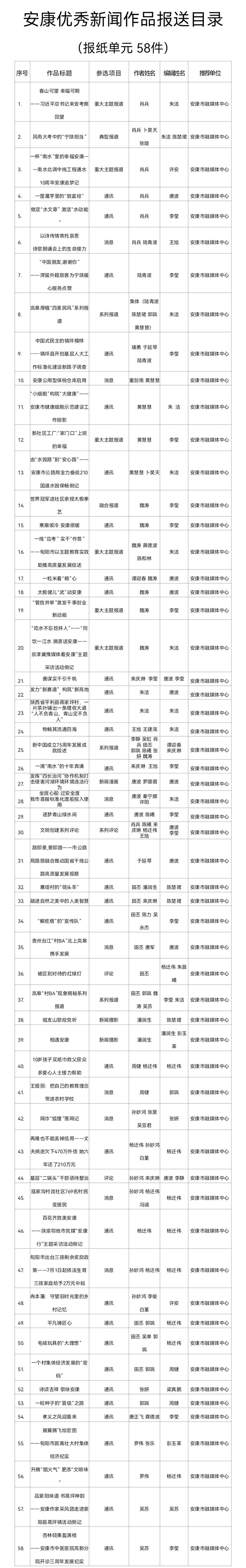 附件:安康优秀新闻作品报送目录(共计97件)