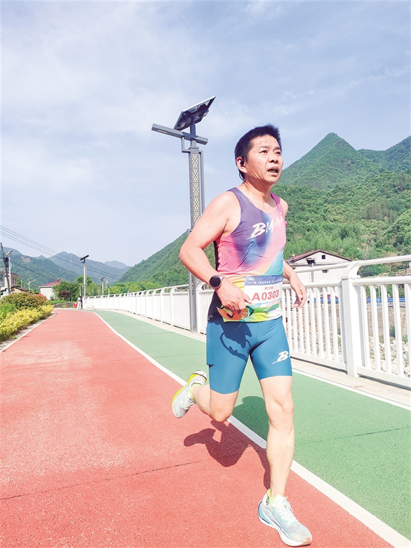 沿途的补给站早已经准备就绪,啦啦队举着“加油”的标语牌挥舞,沿途的村民不分男女老少纷纷为选手鼓劲。比赛中,临近退休却坚持跑步10余年的“老将”肖军鼓励大家:“一定要稳住节奏,后半程才不会掉速!”大颗大颗的汗水在他脸颊流淌,却掩不住他眼中跃动的光芒。
