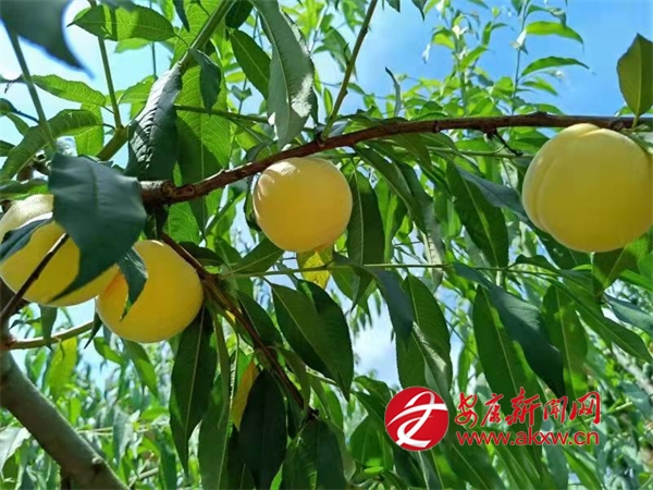 本网讯(通讯员 王文艺 安静 李军)一口香甜四溢,两口暑热渐消。眼下,汉阴县双乳镇江河村的黄桃即将成熟,沉甸甸的果子挂满枝头,绿树掩映间,金灿灿的果子肉汁丰满,随风摇曳,散发出诱人的桃香味。