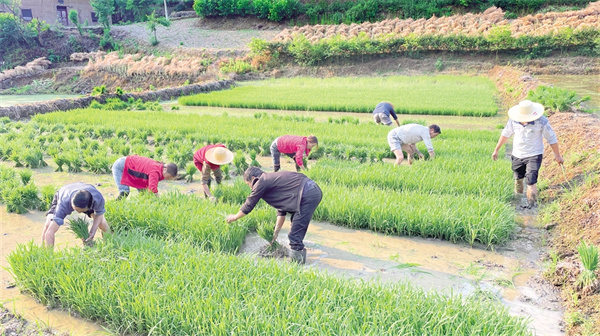 人田两不闲 村民插秧忙