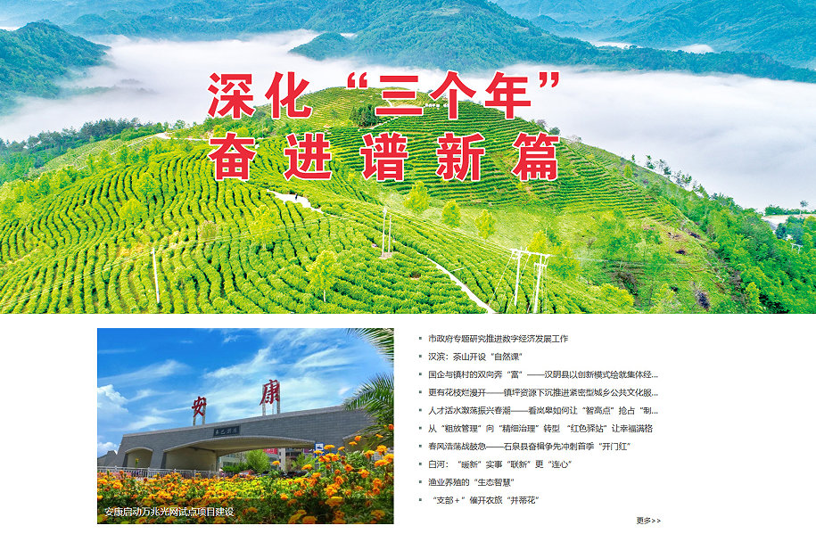 优化政务报道推送方式,编排呈现,如《王浩会见中国移动陕西公司党委书记董事长总经理周敏》《最新!安康一批领导干部职务调整》等多条政务报道、消息阅读量过万。网站联合市总工会策划原创作品“安康榜样”系列劳模事迹展播视频,目前已播出12期,《朱亚男:在黑白光影之间“看见”》《王荣荣:用真心守护万家幸福》《刘瑞红:菜篮子里的“致富路”》等一批稿件,聚焦对安康市有突出贡献的先进典型,充分礼赞劳模工匠,弘扬劳动精神,引领向劳模看齐的社会风尚。
