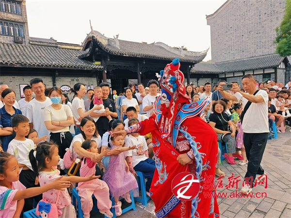 变脸表演人员与观众互动