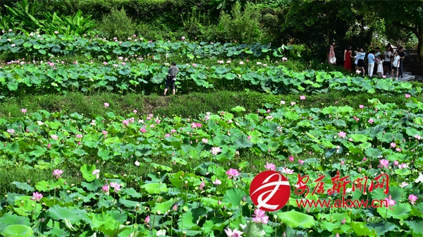 连日来,平利县广佛镇余家湾百亩荷塘花开争艳,引得游人或驻足细品荷韵,或轻倚栈道拍摄留影。王韬 摄