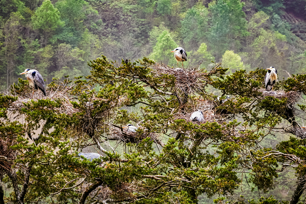 近年来,紫阳县高桥镇生态环境持续向好,吸引苍鹭前来“安家”。 刘宗才 摄