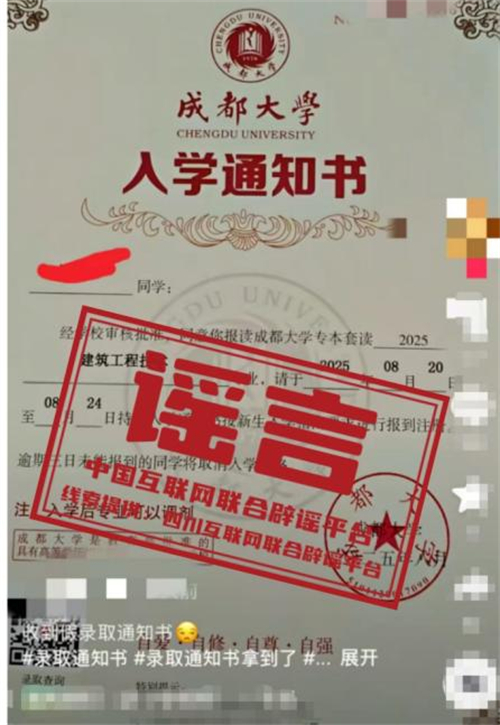 教育部多次提醒,部分机构和个人打着普通高等学历教育幌子,实际却为自考助学、网络教育等其他教育形式,或进行虚假宣传。如未通过高考招生录取获得正式通知书,无法注册普通高校正式学籍,也无法取得普通高等学校学历证书。考生及家长应通过正规渠道核验录取信息,严格保护个人信息,防止被不法分子利用。(来源:四川互联网举报辟谣平台、成都网络辟谣)
