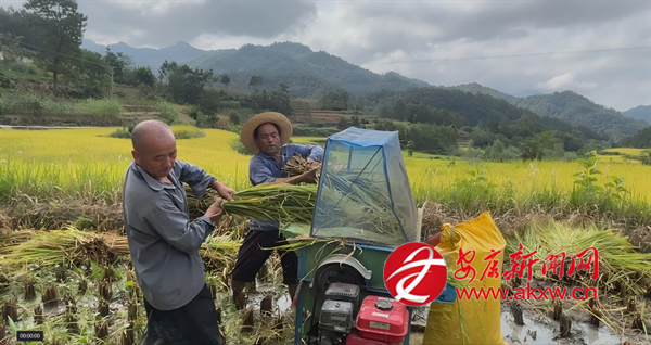 9月12日,走进迎丰镇梧桐寺村的冷水稻田里,“轰隆、轰隆、轰隆……”的机器声响彻田坝。一台水稻收割机正在田里来回穿梭,一次性完成收割、脱粒、秸秆粉碎、除杂等工作,顷刻间一片丰硕的水稻便尽收机囊,随后通过滚筒把谷子输送到准备好的袋子中。村民们忙着转运,金色的稻田中一派热闹忙碌景象。
