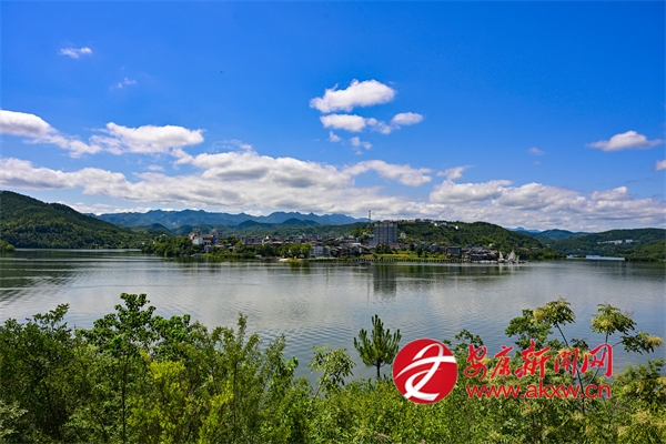 9月14日,汉滨区流水镇在蓝天白云掩映下,勾勒出一幅生态宜居的美丽乡村画卷。林江 摄