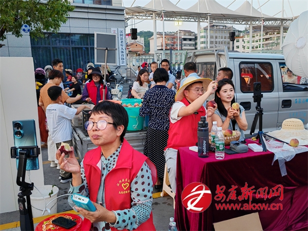 △ 汉阴县蒲溪镇第一书记组团在县村超比赛场地外直播卖桃子,累计帮销红桃2.8万余斤。