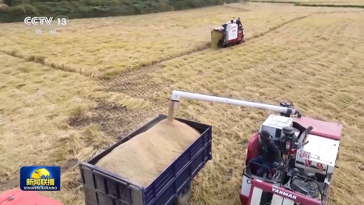 在黑龙江五常市振兴村,13000多亩水稻进入收获期,智慧农机高效协同作业,现在“五常大米”品牌价值超过710亿元。