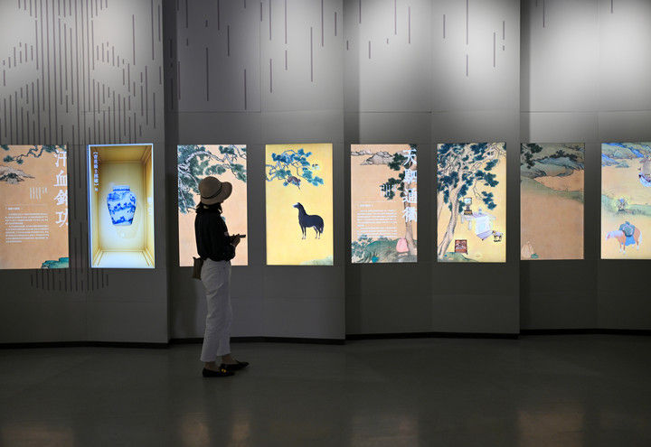 2025年6月3日,观众在故宫大高玄殿数字馆参观“腾跃古今——马文化数字艺术展”。大高玄殿数字馆是故宫博物院第二座全数字形态的展厅,是一座集展览、研究、教育等功能于一体的多元化数字空间。此次举办的“腾跃古今——马文化数字艺术展”,聚焦于“马”的精神象征及其与人类社会的紧密联系,重点展示了故宫博物院院藏与马相关500余件超高清文物影像数据,借助沉浸式投影、三维互动、知识图谱等前沿技术手段,让这些难得一见的珍贵文化遗产“活起来”。