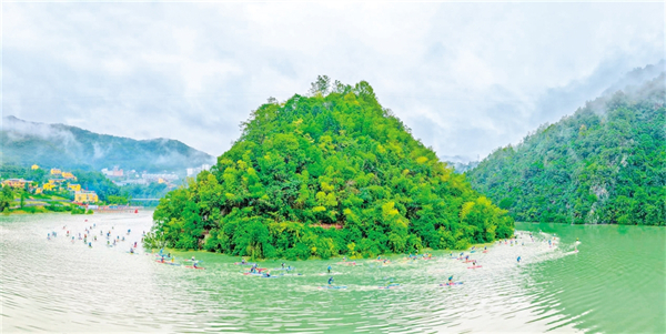 10月5日,岚皋县举办2025中国岚韵“梦见蓬莱杯”欢乐桨板大奖赛,吸引众多游人前来观赛观光。唐军 摄
